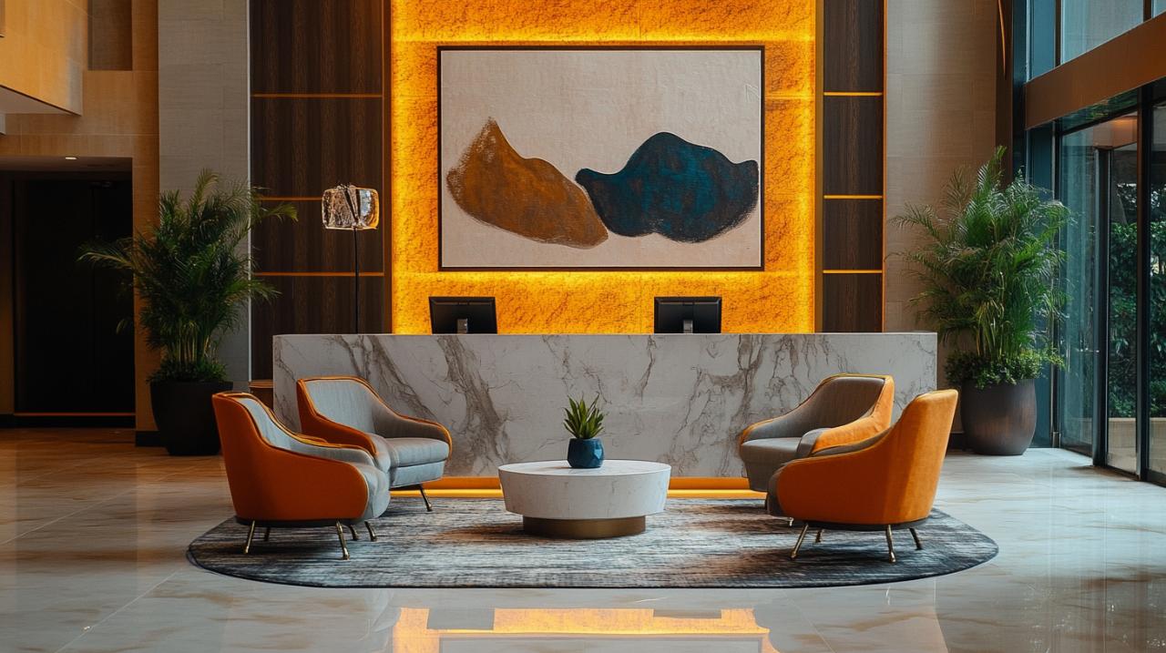 L'ambiance d'un hôtel se construit à travers des choix esthétiques cohérents qui reflètent son positionnement. Que l'établissement opte pour un style moderne, scandinave ou industriel, chaque élément de mobilier doit s'inscrire dans cette vision globale. Les matériaux nobles comme le bois contribuent à renforcer cette identité visuelle tout en apportant une touche d'authenticité. Les couleurs et la lumière influencent directement l'humeur des clients et participent activement à la création d'une expérience mémorable. Les œuvres d'art locales et les éléments décoratifs uniques transforment les espaces communs en lieux de découverte qui racontent l'histoire de la région ou de l'établissement. Cette personnalisation va au-delà de l'esthétique pour créer un lien émotionnel avec les visiteurs. Dans les hôtels trois ou quatre étoiles, cette cohérence visuelle devient un atout majeur pour fidéliser la clientèle et justifier le positionnement tarifaire.